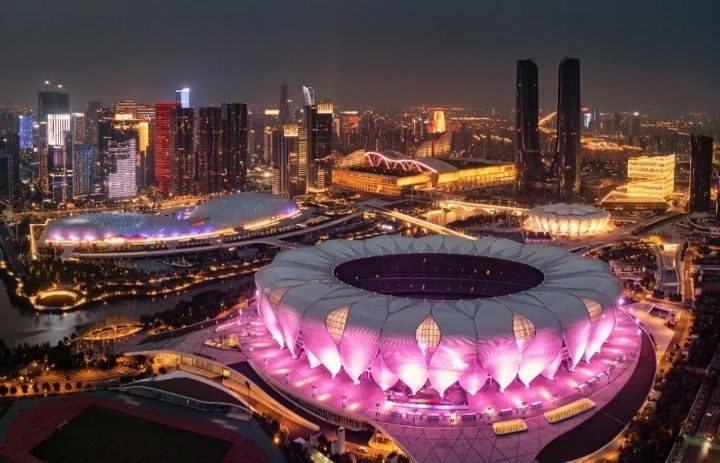 比如充滿想象的場館設(shè)計。錢塘江畔的“大蓮花”,其建筑體態(tài)源于錢塘江水的動態(tài),給人以震撼的同時,也“盛放”出浙江的文化底蘊和藝術(shù)魅力;“水幔”環(huán)繞的手球館,外觀別具一格,“條條水?!贝孤浜苁俏?;以“杭州傘”為造型的曲棍球場,則詮釋出江南古典美學(xué)十足的浪漫韻味。
