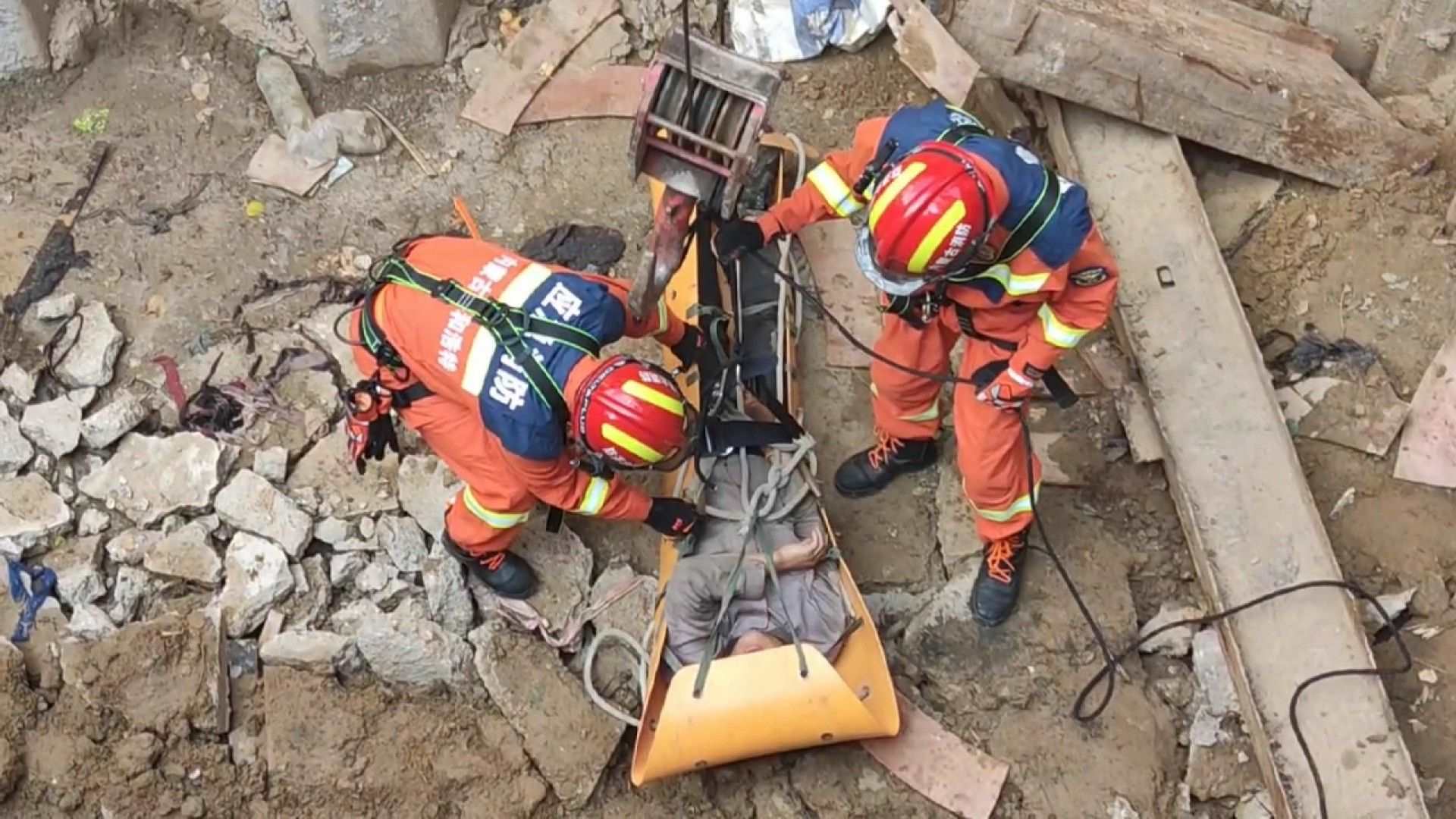 現(xiàn)場指揮員立即組織救援人員穿戴好防護裝備,攜帶多功能擔(dān)架并利用附近施工吊車下降到被困人員位置,針對被困人員受傷部位做好保護措施后,將被困男子轉(zhuǎn)移至擔(dān)架上。