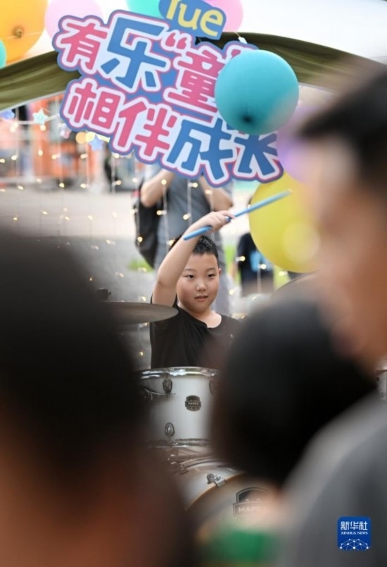 7月8日,小朋友在帳篷音樂會上表演節(jié)目。
