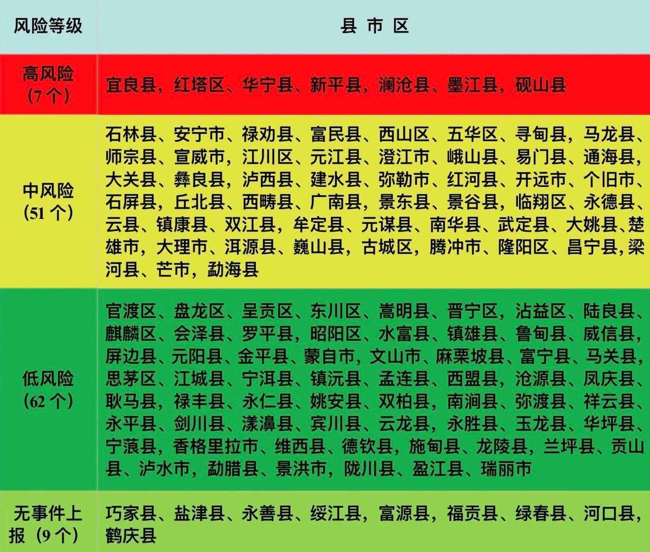 為切實維護廣大人民群眾身體健康和生命健康,有效減少有毒野生菌中毒事件發(fā)生,云南省依據(jù)2020—2022年全省野生菌中毒數(shù)據(jù)并結(jié)合各地有毒野生菌種類(重點關(guān)注中毒致死的野生菌亞稀褶紅菇,劇毒鵝膏類等),將云南所轄129個縣(市、區(qū))野生菌中毒風險分為高、中、低三個等級,累計中毒事件起數(shù)≥100起或死亡人數(shù)≥3人的地區(qū)劃定為高風險地區(qū),累計中毒事件起數(shù)為30—99起或死亡人數(shù)為1—2人的地區(qū)劃定為中風險地區(qū),累計中毒事件起數(shù)<30起且無死亡的地區(qū)劃定為低風險地區(qū),繪制了《2023年云南省有毒野生菌中毒風險分級地圖》《2023年云南省有毒野生菌中毒風險分級表》。
