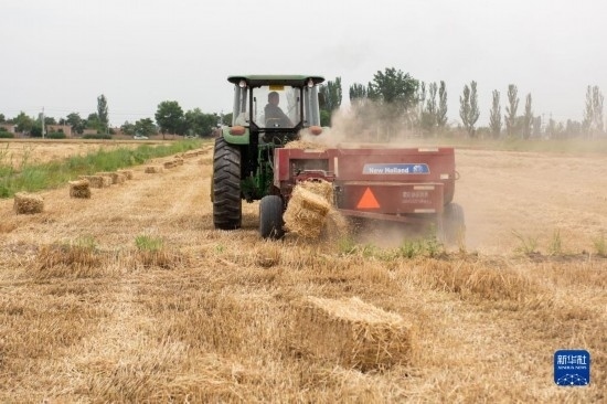 近日,寧夏小麥種植區(qū)由南到北陸續(xù)進入收獲期,當地農民緊抓農時開展夏收作業(yè),確保小麥顆粒歸倉。麥收同時小麥秸稈也得到回收,用于牛羊養(yǎng)殖等領域,不僅提高了秸稈綜合利用率,還增加了農民收入。