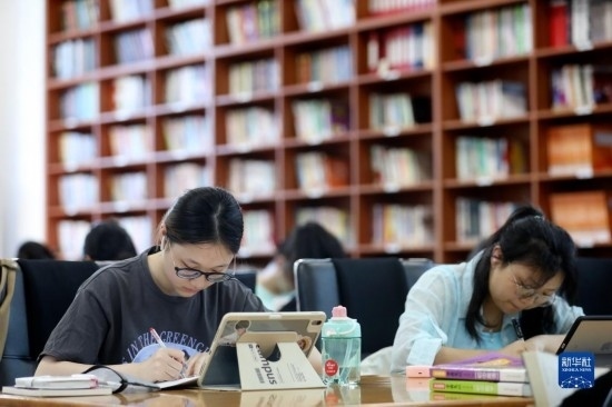 7月12日,學生在浙江省金華市金東區(qū)圖書館閱讀。