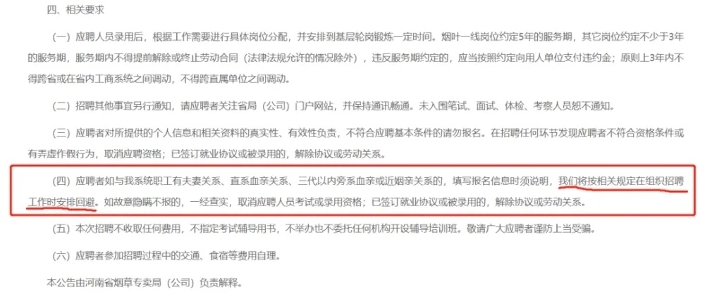 有媒體就此梳理發(fā)現(xiàn),全國(guó)多個(gè)地方的煙草局和煙草公司在招聘中,均提出該要求。其實(shí),翻看近些年各地?zé)煵菥值恼衅感畔⒖梢园l(fā)現(xiàn),列明回避制度是一個(gè)常規(guī)操作。上述規(guī)定出自《國(guó)家煙草專賣局中國(guó)煙草總公司關(guān)于印發(fā)煙草行業(yè)招聘工作管理辦法的通知》第十一條,早就存在,且非常明確。