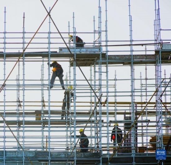 7月21日,在阿克塞千萬千瓦級可再生能源多能互補基地,工人在匯東新能源75萬千瓦光熱+項目建設(shè)現(xiàn)場施工。新華社發(fā)(馬曉偉 攝)