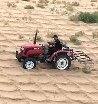 杜維倫在運(yùn)送稻草,準(zhǔn)備制作草方格。 受訪者供圖