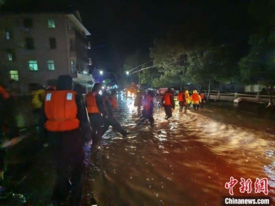如在富陽區(qū)大源鎮(zhèn)青山村,暴雨引發(fā)的洪水流過村莊道路,水勢湍急,村內(nèi)也出現(xiàn)停電情況,一些村民只能待在家中二樓,當(dāng)?shù)卣e極開展救援、轉(zhuǎn)移工作。富陽常綠鎮(zhèn)也出現(xiàn)人員受困情況,當(dāng)?shù)氐谝粫r間轉(zhuǎn)移受困人員的同時,安排多臺挖掘機、鏟車不間斷運轉(zhuǎn)全力開展排水溝渠疏通、砂石淤泥清除等作業(yè)。在當(dāng)?shù)佚堥T鎮(zhèn),5名游客因為突然降雨無法下山,后在消防隊的幫助下被安全送至山下。