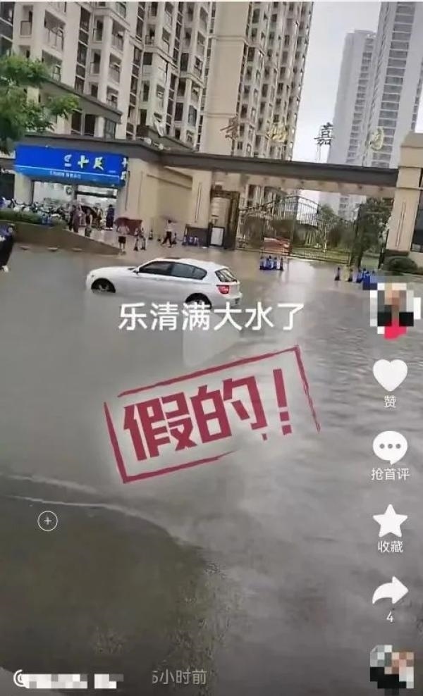 巡查還發(fā)現(xiàn)有網(wǎng)民發(fā)布視頻,標有文字“樂清滿大水了”,內(nèi)容可見有小區(qū)門口積水嚴重,在道路停放的幾輛汽車被淹至車身一半。經(jīng)核實,該視頻并非發(fā)生在樂清。發(fā)布視頻的網(wǎng)民陳某某(男,43歲)為吸引眼球捏造事實,在某平臺賬號發(fā)布,造成負面影響,已被警方依法給予行政處罰。