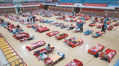 8月3日拍攝的北京房山區(qū)良鄉(xiāng)體育中心安置點(diǎn)。本報記者 張武軍攝