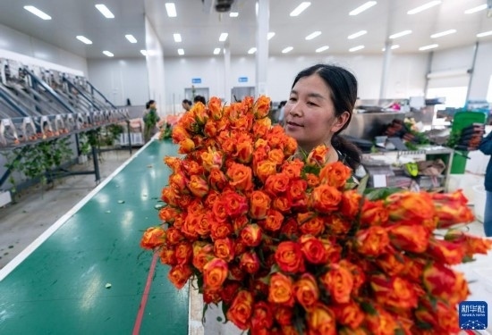 清晨,在云南省昆明市晉寧區(qū)云天化晉寧花卉產(chǎn)業(yè)現(xiàn)代化示范園內(nèi),品類各異的鮮花競(jìng)相綻放,花農(nóng)們?cè)诂F(xiàn)代化大棚里忙著采摘、搬運(yùn)。云天化晉寧花卉產(chǎn)業(yè)現(xiàn)代化示范園是集育苗、智能溫室大棚、水肥一體化、無土綠色栽培、全程數(shù)字化管理系統(tǒng),以及鮮切花采后處理、預(yù)冷儲(chǔ)藏等為一體的高標(biāo)準(zhǔn)設(shè)施農(nóng)業(yè)產(chǎn)業(yè)園區(qū),年產(chǎn)鮮切花1.6億枝。