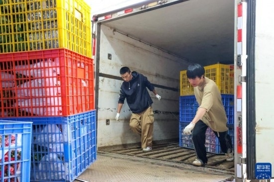 一名花商在昆明國際花卉拍賣交易中心外準(zhǔn)備將拍得的鮮花裝車運(yùn)走(7月13日攝)。新華社記者 陳欣波 攝