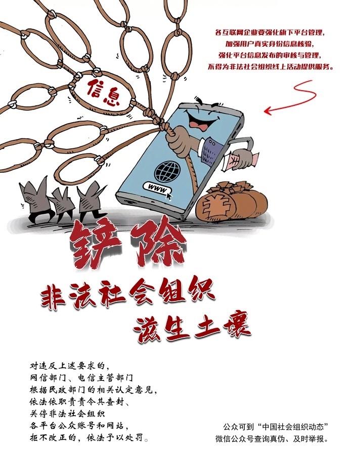 人民網(wǎng)北京8月7日電 近日,民政部社會組織管理局圍繞近期發(fā)生的非法社會組織活動進行提醒,要求各地各相關(guān)部門進一步提高政治站位,確保打擊整治工作落到實處。公眾可到“中國社會組織動態(tài)”微信公眾號查詢真?zhèn)巍⒓皶r舉報。(宋子節(jié) 實習(xí)生李珂)