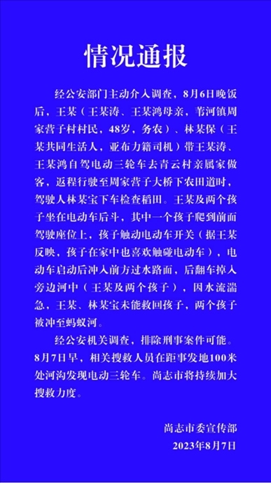 ·黑龍江尚志通報(bào)兩孩子墜河:誤觸電動(dòng)車開關(guān),排除刑案可能。