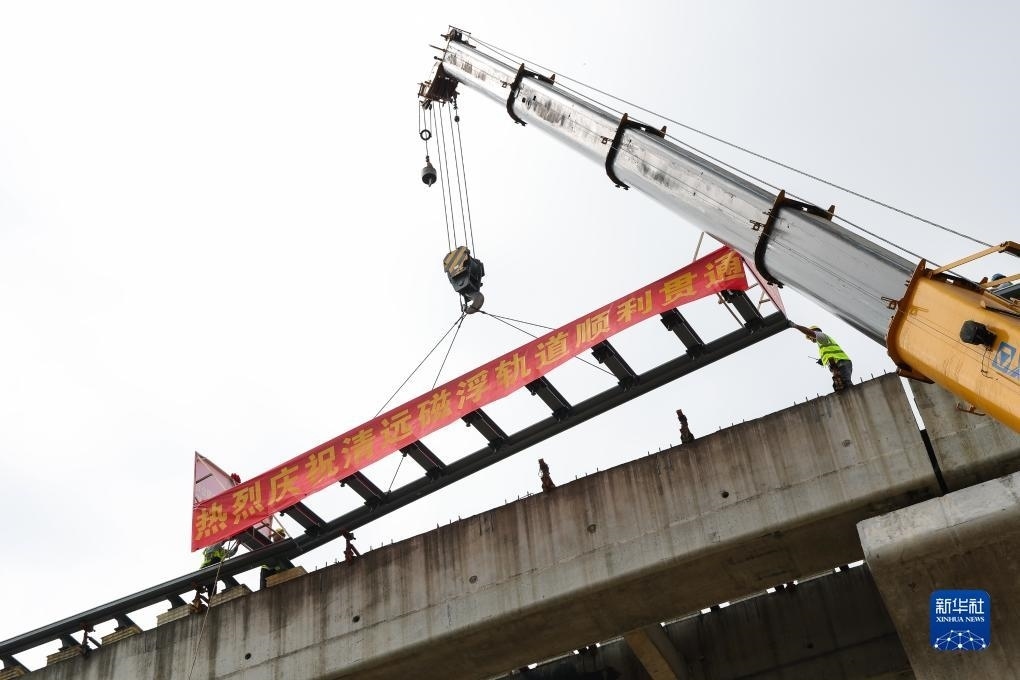 8月10日,廣東清遠(yuǎn)磁浮旅游專線最后一榀軌排被吊裝到橫跨京廣鐵路的長隆特大橋上。