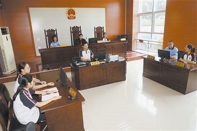 “現(xiàn)在開庭……”隨著審判員敲響法槌,庭審拉開帷幕,學(xué)生們?cè)谂月犗稀傲憔嚯x”感受庭審,對(duì)庭審流程及程序有了直觀的了解。