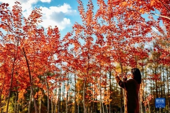 10月19日,游人在長春市百木園內(nèi)觀賞秋景。