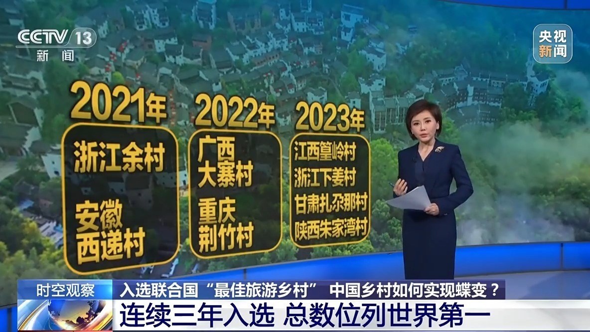 中國是從2021年就開始參與這個評選了,所以前兩屆也都有入選鄉(xiāng)村,2021年入選的是浙江余村、安徽西遞村;2022年入選的是廣西大寨村、重慶荊竹村,加上今年入選的四個村子,我國入選的總數(shù)已經(jīng)達到8個,目前是全世界擁有“最佳旅游鄉(xiāng)村”最多的國家。
