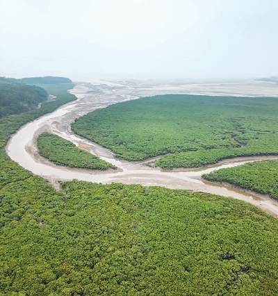 廣西山口紅樹(shù)林生態(tài)國(guó)家級(jí)自然保護(hù)區(qū)地處廣西合浦縣東南部沙田半島的東西兩側(cè),由該島東側(cè)和西側(cè)的海域、陸域及全部灘涂組成,面積8000公頃。圖為保護(hù)區(qū)一角。徐 譚攝