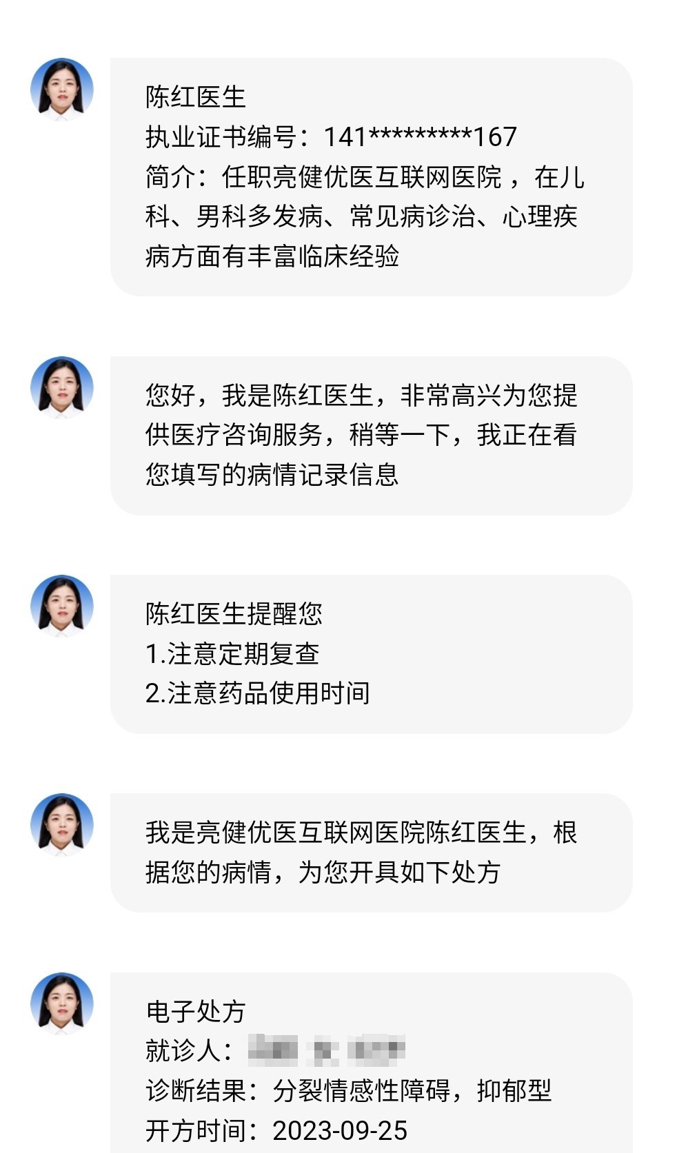何女士:是付費(fèi)問診,錢不多就9塊9,我點(diǎn)進(jìn)去之后,他給我開了藥,我吃了之后差不多一兩個(gè)小時(shí),我就感覺不舒服,因?yàn)槲揖涂人缘煤車?yán)重,聲音也全變了。嚴(yán)重了之后,我要去找這個(gè)醫(yī)生,我想問他我為什么吃藥嚴(yán)重了,但是就診頁面只限那一次,只能問,然后我就找他們醫(yī)院的電話打過去。他們行政總值班的人告訴我,醫(yī)生照片是他們的醫(yī)生,專業(yè)擅長(zhǎng)方向不對(duì)。醫(yī)生的專業(yè)擅長(zhǎng)方向是推拿科,但是我就診的記錄上面寫的是呼吸內(nèi)科。