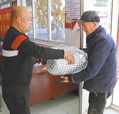 上午10時(shí),走進(jìn)碼頭村黨群服務(wù)中心,正碰上73歲老人杜金亭騎著電動(dòng)三輪車,載著老伴來(lái)領(lǐng)新棉被。為保障困難群眾冬季取暖,涿州市民政局為全市殘疾人、“六類人群”免費(fèi)發(fā)放過(guò)冬棉被。杜金亭的老伴肢體殘疾,是低保戶?!靶路颗渖闲旅薇唬@個(gè)冬天不愁了!”取上新棉被,杜金亭邀請(qǐng)記者去新家看一看。