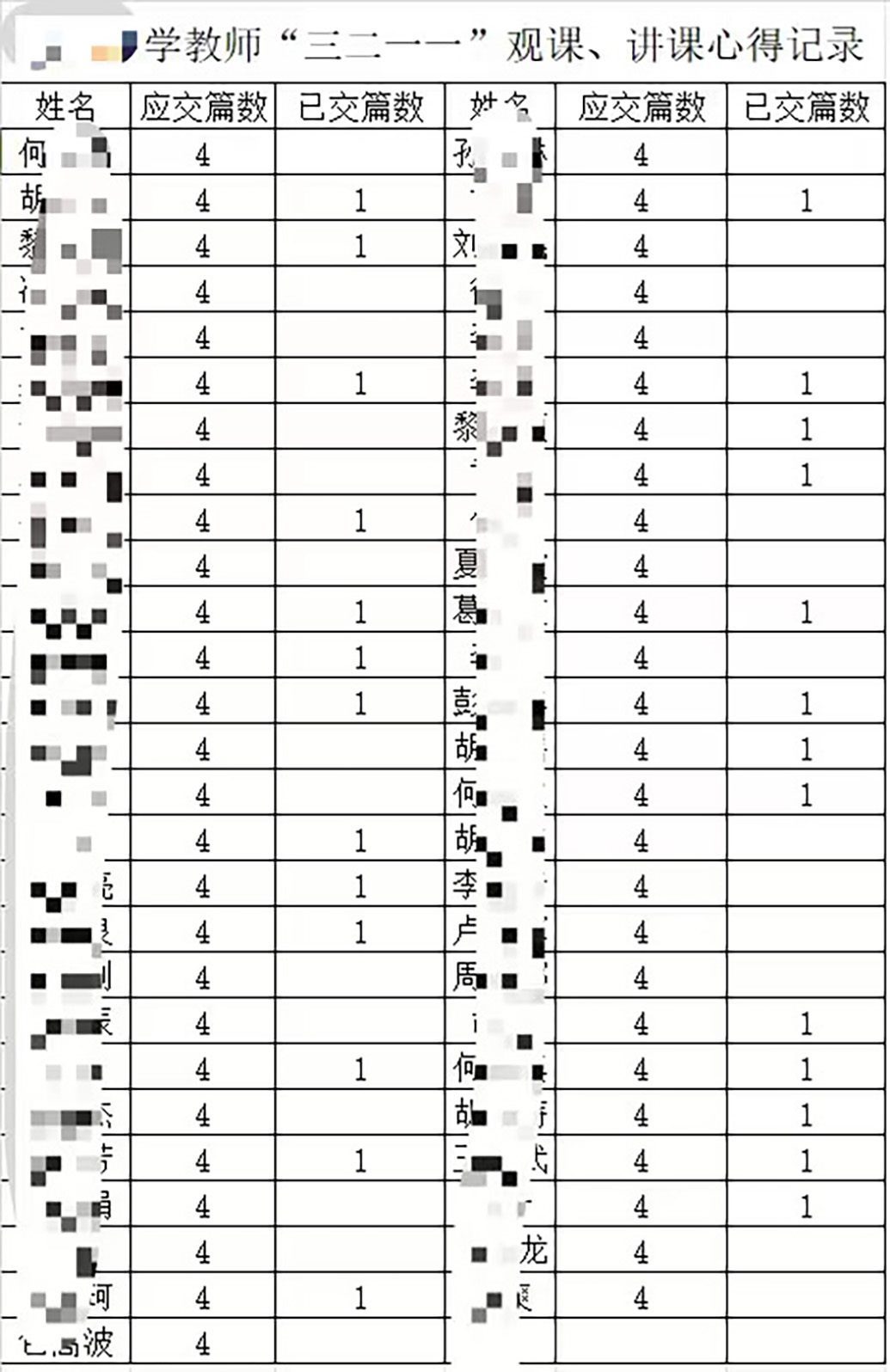 作為班主任,她承擔(dān)管理班級(jí)的責(zé)任,學(xué)校為了“看見(jiàn)”管理內(nèi)容,會(huì)安排教師們填寫(xiě)各種各樣的表格,包括每日缺勤記錄表,每日、每周、每月、每學(xué)期的安全記錄表,班主任工作手冊(cè),行為規(guī)范課堂記錄表,家訪表,家長(zhǎng)會(huì)座談表等。表格一多,何雪夕免不了“造假”。