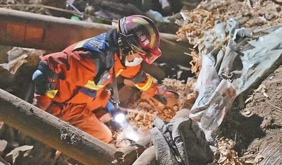 12月19日凌晨4時(shí)30分許,青海省海東市消防救援支隊(duì)消防救援人員在民和回族土族自治縣搜救被困人員。亓玉昆 祁 棟攝影報(bào)道