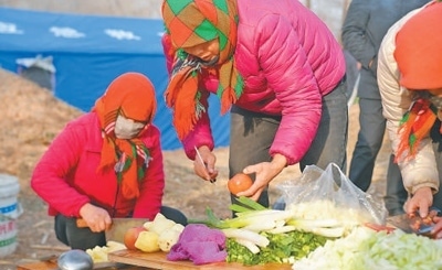 12月19日16時(shí)20分許,在青海省海東市民和回族土族自治縣金田村安置點(diǎn),受災(zāi)群眾正在帳篷旁準(zhǔn)備晚飯。本報(bào)記者 賀 勇攝