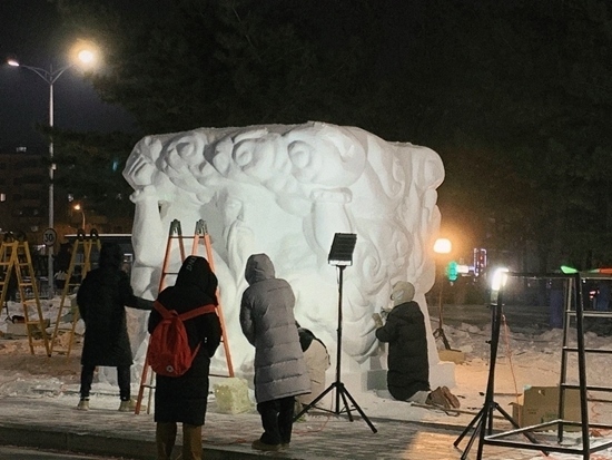 能夠與冰雪“親密接觸”,中國美術(shù)學(xué)院的熊竣苓要感謝剛剛在哈爾濱落幕的第十六屆國際大學(xué)生雪雕大賽。他所在的團(tuán)隊(duì)由包括他在內(nèi)的4位南方同學(xué)組成,他們創(chuàng)作的雪雕作品《盤古開天》獲得了一等獎。這段比賽經(jīng)歷讓第一次去哈爾濱的熊竣苓非常難忘,“最近哈爾濱很火,雖然我是去參加比賽的,但能去哈爾濱一趟,也非常激動了。我記得我們從機(jī)場到酒店的路上,透過車窗看到了霧凇,一下子就讓我這個南方人感受到了北方冬天的美?!彼貞洠鲅┑駮r,他和另外3位同學(xué)都既緊張又興奮,“我們都是第一次觸摸雪做雕塑,此前在學(xué)校練習(xí)時是用泥巴或石膏,跟雪是完全不同的質(zhì)感,所以過程中我們都小心翼翼,非常緊張;同時,我們都是第一次見到這么多雪,太激動了?!?/p>