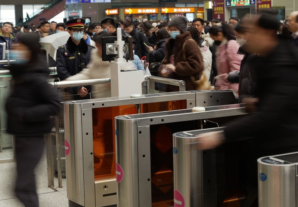 1月17日,旅客在鄭州東站檢票候車。新華社記者 李嘉南 攝