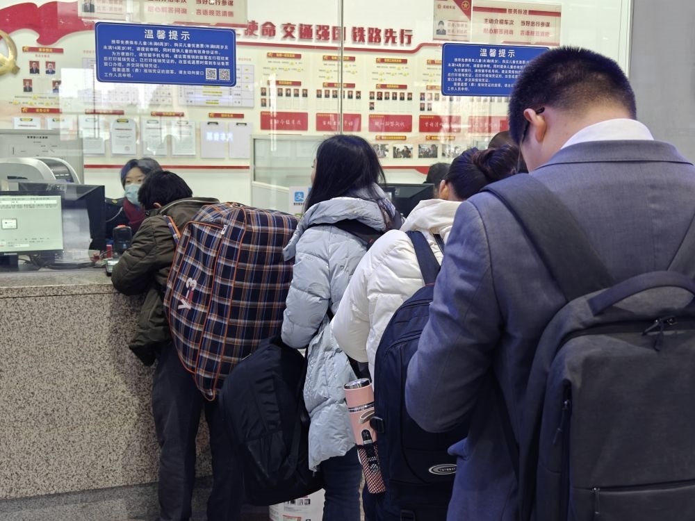 1月17日,在成都東站,旅客正在窗口購票。新華社記者 謝佼 攝