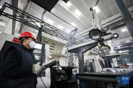 12月21日,在位于隆堯縣的河北遠大閥門集團有限公司鍛鋼高端定制車間,工人操控智能設(shè)備加工閥門產(chǎn)品。
