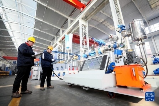 12月21日,在位于隆堯縣的河北遠大閥門集團有限公司大口徑車間,工人在查看智能調(diào)水設(shè)備運行情況。