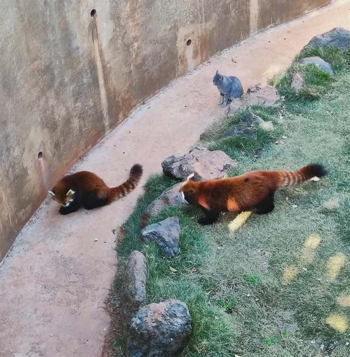 為何要在小熊貓園養(yǎng)貓?極目新聞記者就此咨詢了洱海公園。相關工作人員稱,公園里確實有小熊貓,不存在貓咪“頂崗”。因為小熊貓園比較開放,容易招來老鼠,公園便在這里養(yǎng)了貓咪來抓老鼠。此外,公園還在同樣比較開放的猴園也養(yǎng)了貓咪來防鼠患。至于其它動物的館舍,因為是籠養(yǎng),老鼠較少出沒,所以就沒有養(yǎng)貓。