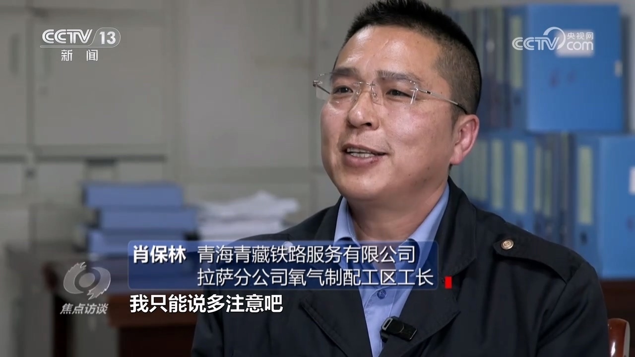 青海青藏鐵路服務(wù)有限公司拉薩分公司經(jīng)理王文海:“制氧這塊,5年之內(nèi)換了5位同志,都因?yàn)樽约旱纳眢w情況不太好,自己缺氧還得給別人送,扛著氧氣瓶太累?!?/p>