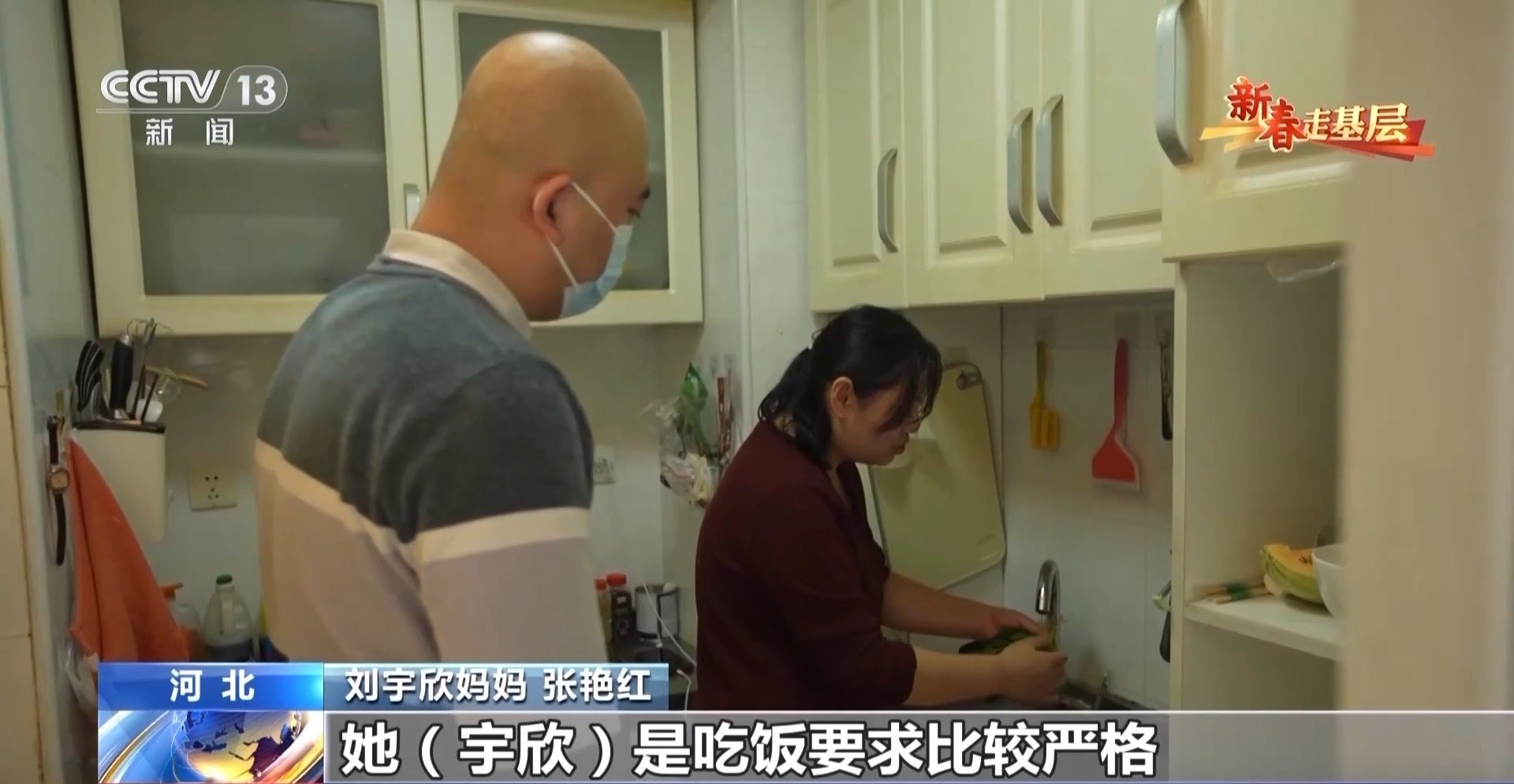 劉宇欣媽媽 張艷紅:宇欣吃飯要求比較嚴格,洗菜的時候要洗得特別干凈。一般都得洗個三遍以上才能干凈,因為有一點細菌都不行。感覺時間特別緊,她吃完上頓你要準備下頓的。