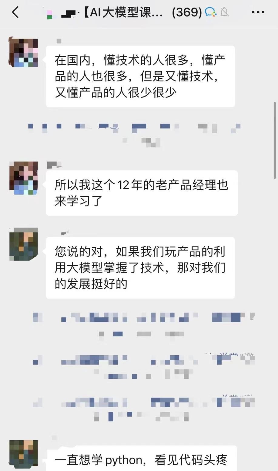 某AI大模型交流群內(nèi),有成員解釋自己學(xué)習(xí)相關(guān)課程的原因。