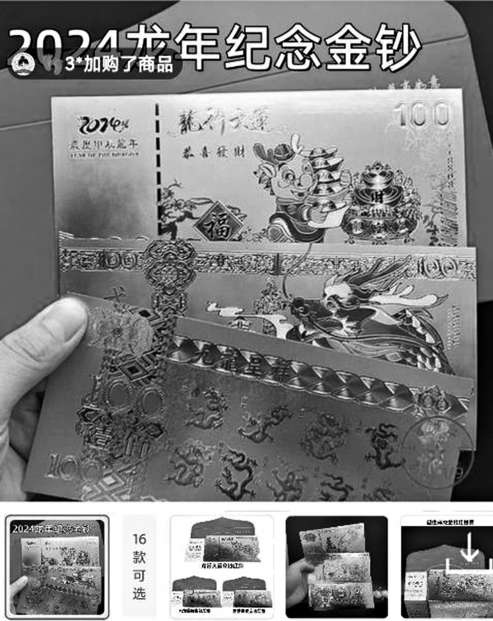 春節(jié)期間,互聯(lián)網(wǎng)平臺上出現(xiàn)了不少“賣錢”的直播間。各類以龍為主題的“紀念鈔”“紀念幣”“紀念券”花樣頻出,應時應景,再配上精美的包裝,被宣稱為“升值潛力巨大”。然而,它們究竟價值幾何、內(nèi)里貓兒膩普通人尤其是老人很難分辨,稍不留神,就會踩坑。