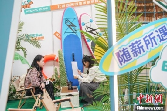 綠植、鮮花、槳板、布氏鯨、海島咖啡……廣西北海市潿洲島旅游區(qū)的招聘展臺呈現(xiàn)了一個微縮版的景區(qū)場景,當(dāng)日吸引2100人現(xiàn)場面試。