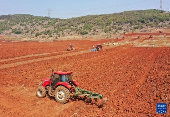 3月7日,在云南省開遠(yuǎn)市中和營鎮(zhèn),農(nóng)機(jī)手駕駛拖拉機(jī)整地。