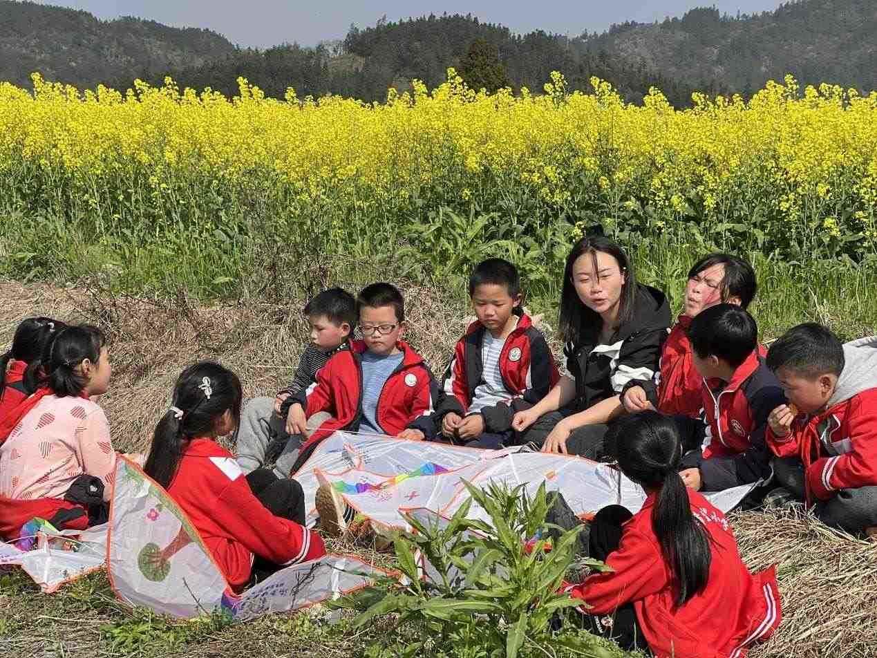 李柏霖不愿意讓孩子們覺(jué)得這樣的情緒是生活的全部。她把課堂搬到野外,在“搖搖花”開的時(shí)候帶孩子們?nèi)タ础皳u搖花”,油菜花開時(shí)去看油菜花。花也是詩(shī),家鄉(xiāng)也是詩(shī)——若非如此,老師為什么走了又回呢?