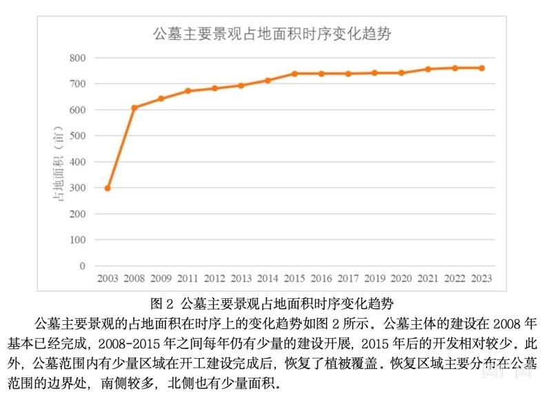 位于青島城陽區(qū)夏莊街道華陰社區(qū)太平山的太平陵公墓,地處嶗山山脈西麓,在嶗山風(fēng)景區(qū)保護(hù)范圍內(nèi)。該公墓是1996年經(jīng)民政部門審批的經(jīng)營(yíng)性公墓,合法審批面積為87.53畝。遙感衛(wèi)星影像分析顯示,該公墓大面積非法擴(kuò)建已持續(xù)多年,存在毀林挖山建墓地的情況。