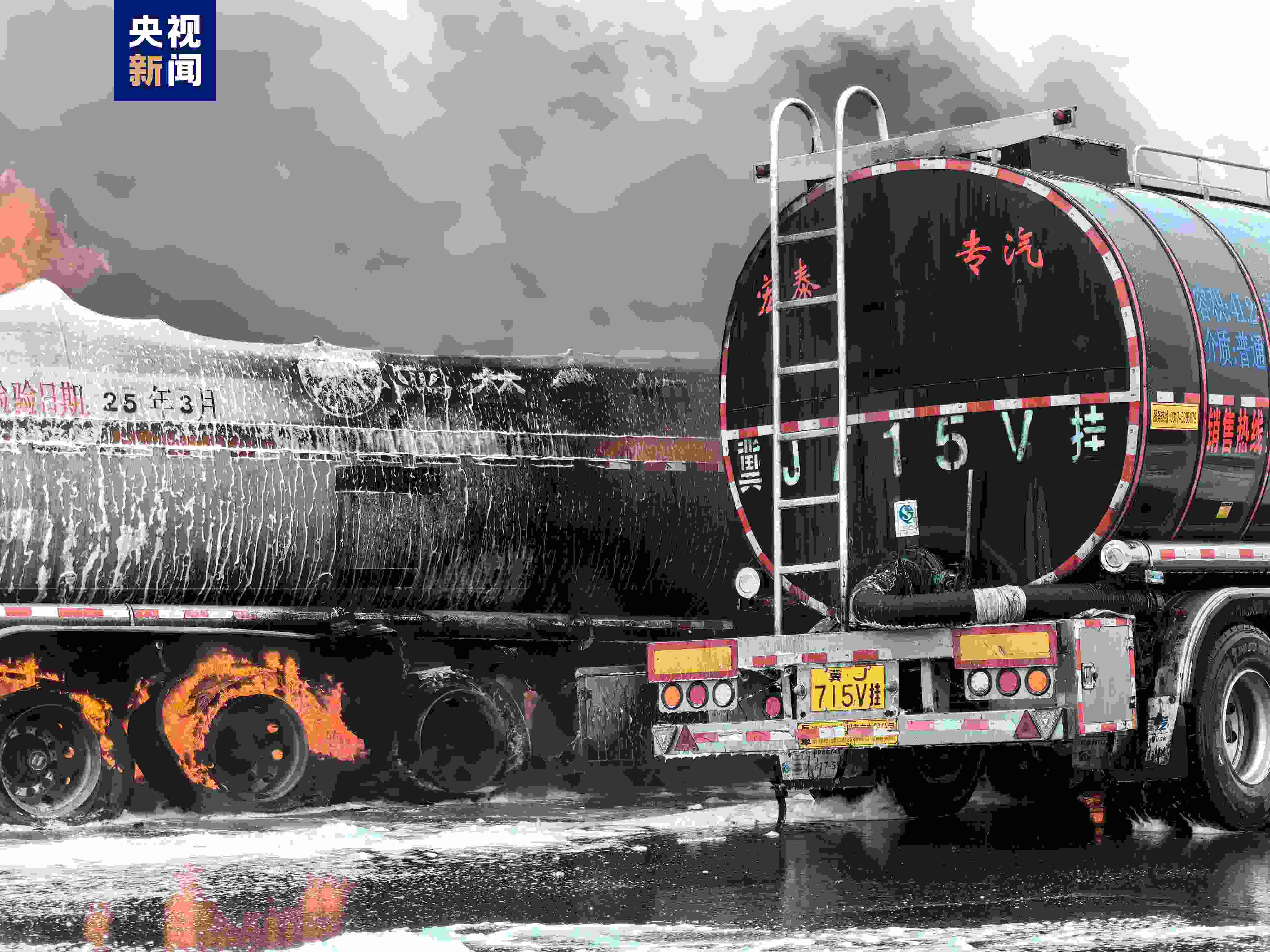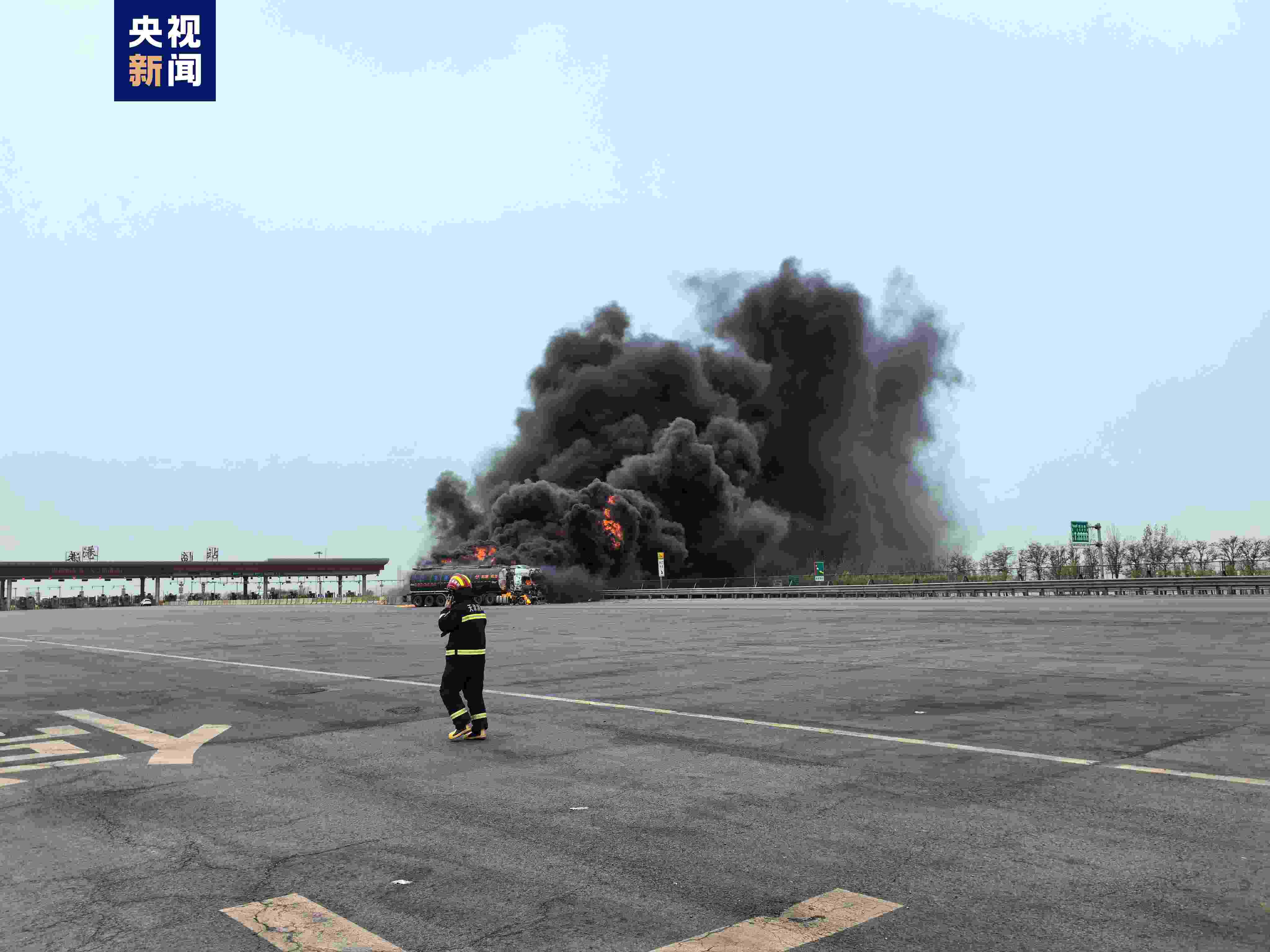 今天(19日)上午,天津市濱海新區(qū)秦濱高速臨港收費站出口有兩輛罐車發(fā)生交通事故后起火。經偵察,現(xiàn)場為一輛載有潤滑油的罐車與一輛載有柴油的罐車相撞,造成兩輛罐車起火。