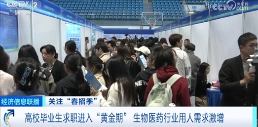 在江蘇南京的一場校園招聘會上,記者看到,生物醫(yī)藥行業(yè)的招聘企業(yè)占據(jù)了整場招聘會接近一半的展位。蔣素梅是一家醫(yī)藥研發(fā)企業(yè)的人力資源負(fù)責(zé)人,剛到招聘現(xiàn)場,就有不少學(xué)生前來投遞簡歷。