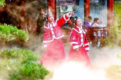 夜幕降臨后,襄陽古城迎來了一天最具魅力的時(shí)刻。漫步在店鋪林立、游人如織的北街上,遠(yuǎn)處巍峨聳立的昭明臺(tái)燈火輝煌,全長1200多米的寬闊街道上,一座座石牌坊坐落其間,兩側(cè)雅致的青磚馬頭墻、明艷的朱紅立柱、優(yōu)美的墀頭朱雀,展示著古老而又時(shí)尚的文化韻味。在北街循著巷子?xùn)|行,便來到了新近開放的管家巷歷史文化商業(yè)街區(qū)。在襄音廣場,隨著音樂聲響起,年輕的演員們與游客共同跳起歡快的舞蹈。管家巷文化休閑街區(qū)運(yùn)營負(fù)責(zé)人劉洋介紹:“《詩畫襄陽》《俠義襄陽》《舞墨襄陽》等10部極具襄陽韻味的特色劇目,在管家巷全程免費(fèi)開放,劉備、諸葛亮、李白、杜甫、孟浩然等30多位歷史名人的扮演者,走街串巷、演藝互動(dòng),游客仿佛穿越至千年前的襄陽?!?/p>