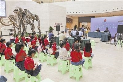 圖①:法官在珍品庫房為小學生講解野生動物保護法律知識。
