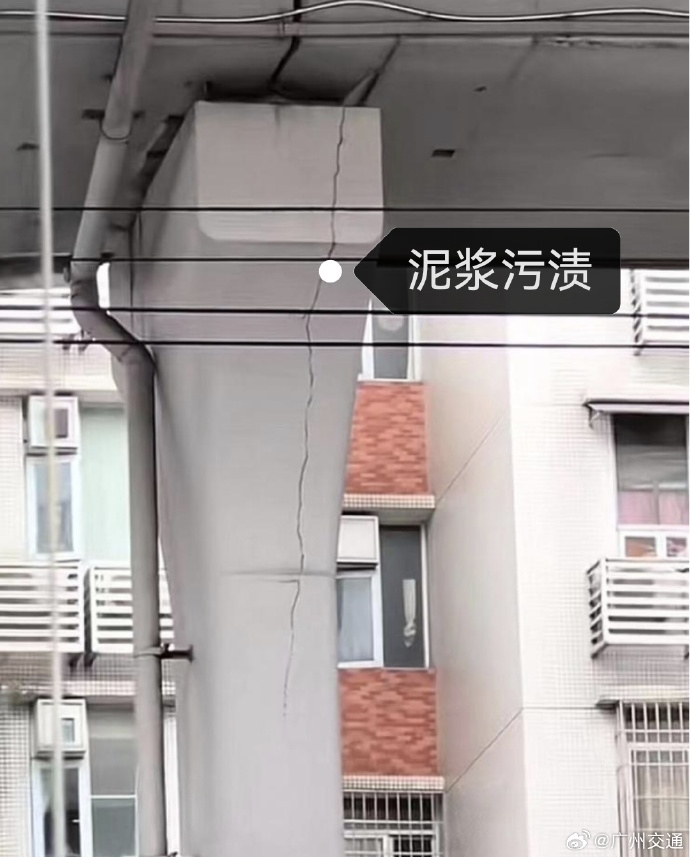 廣州市道路事務中心現(xiàn)場核實,照片中的“裂縫”為泥漿污漬,現(xiàn)已完成污漬鏟除和涂裝翻新。