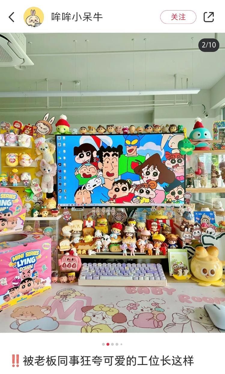 近日,杭州一女生一年內(nèi)花1萬元改造工位引熱議。報道稱小秦因?yàn)槠綍r喜歡收集盲盒手辦,所以在工位上也擺滿了潮玩,她回應(yīng)這樣做能提升工作幸福感,“雖然工位是公司的,但快樂是自己的”。隨著很多盲盒的漲價,現(xiàn)在她的工位價值已經(jīng)超過2萬元。