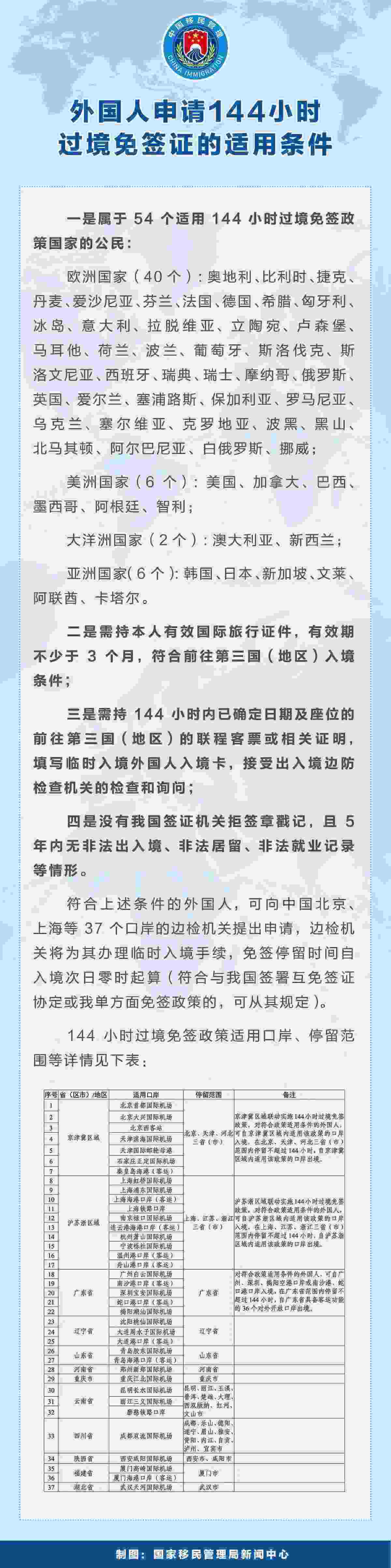 中國144小時過境免簽政策適用口岸增至37個