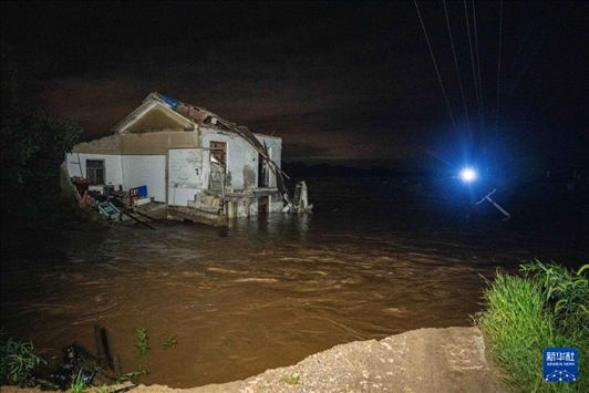 這是7月29日凌晨拍攝的湖南省湘潭縣易俗河鎮(zhèn)四新堤決口現(xiàn)場。新華社記者 陳思汗 攝