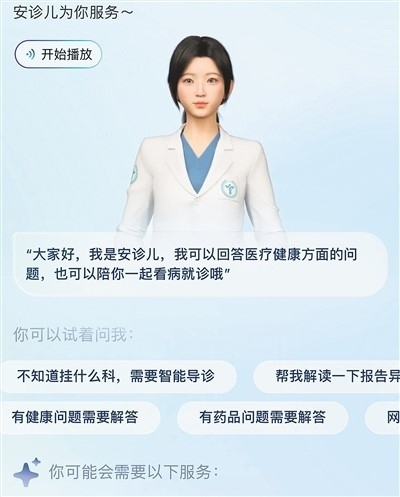 數(shù)字人“安診兒”應(yīng)用截圖。采訪對象供圖