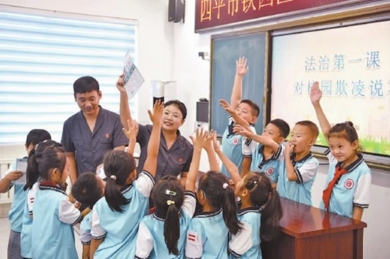 近日,吉林省四平市鐵西區(qū)人民法院依托法治副校長(zhǎng)工作機(jī)制,攜手四平市陽(yáng)光實(shí)驗(yàn)小學(xué)舉辦了一場(chǎng)生動(dòng)的“開學(xué)第一課”,通過(guò)與同學(xué)們互動(dòng)問(wèn)答、角色扮演等形式,為青少年健康成長(zhǎng)營(yíng)造良好法治環(huán)境,不斷提升青少年群體的法治素養(yǎng)。圖為法官與同學(xué)們?cè)谡n堂上進(jìn)行互動(dòng)交流。(記者 孫兵 通訊員 任青陽(yáng))